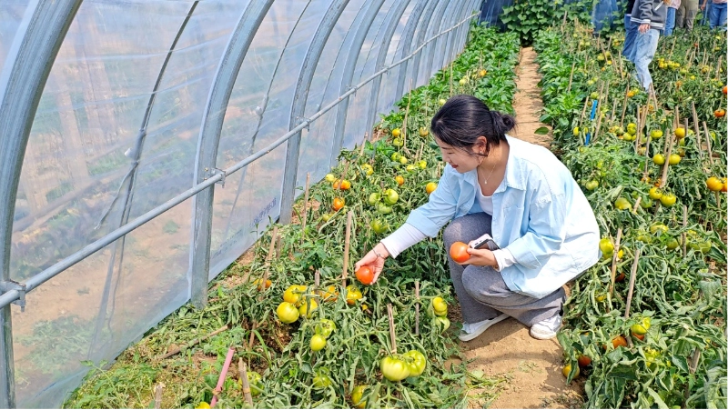 Құмарлықтан кейін бұл ыңғайлы уақыт болды. Сағат 10:30-да табиғатпен сырласу үшін Шячжуан қызанақ жинайтын баққа бірге бардық. Ашық күн болып, егістікке күн сәулесі түсті. Жасыл бұтақтары мен жапырақтары ашық қызыл 69 қызанақпен жабылған, олар дөңгелек және толық, ашық түсті, адамдарды алыстан сілекейлендіретін.