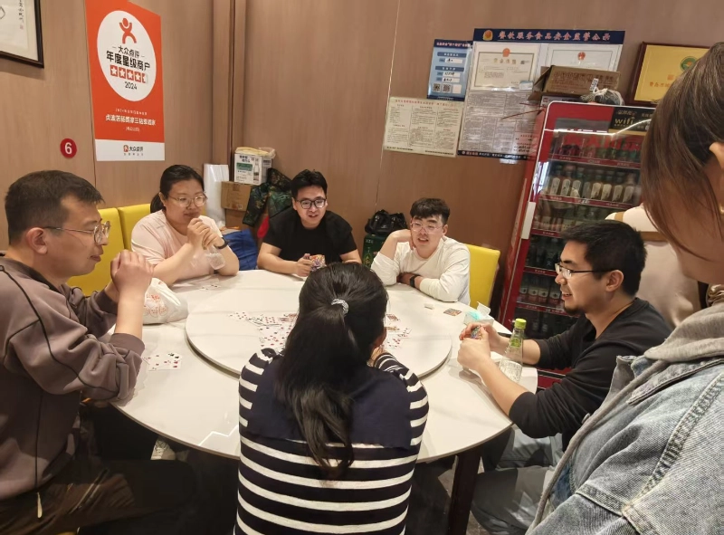 Түскі уақытта біраз демалып, 12:30-да қонақүйге көшіп, қызықты Гуанда жарысын бастадық. Барлығына ұнайтын команда құру жобасы ретінде Гуанда жеке логикалық ойлауды тексеріп қана қоймайды, сонымен қатар серіктестер арасындағы үнсіз ынтымақтастыққа көбірек көңіл бөледі - «Жақсы карта осы сәтте бәсекеге түспейді, ал серіктестің үнсіз түсінігі жеке ерліктен маңыздырақ», бұл Гуанда командасын құрудың маңыздылығы.